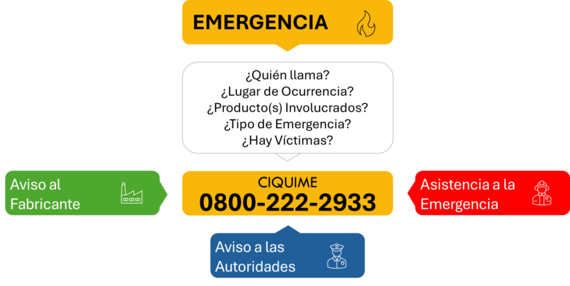 Contamos con un Centro de Comunicaciones de Emergencias (CCE) que funciona las 24 horas los 7 días de la semana, accesible a través del 0800-222-2933 y que es atendido por profesionales químicos que pueden brindar el asesoramiento necesario para la respuesta de emergencia.